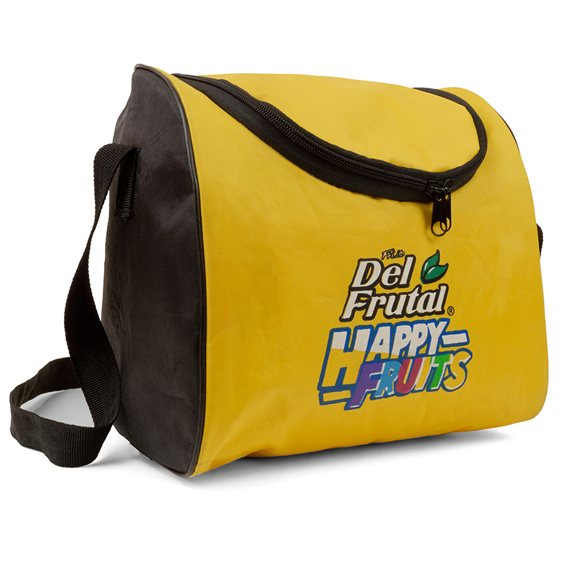 Lonchera de Oxford plastificado, enguatada y forrada con bolsa frontal