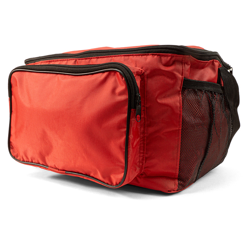 Lonchera de Oxford plastificado, enguatada y forrada con bolsa frontal, tamaño 29 x 16 x 23 cm